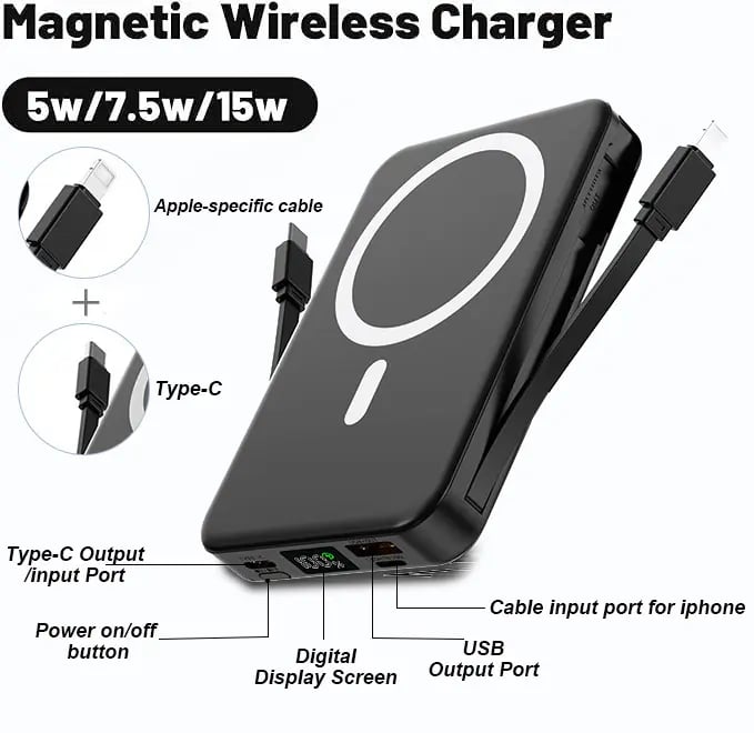 · 22.5W PD Fast Charging: Efficient rapid charging replenishes your iPhone's battery quickly without the need for traditional charging cables.